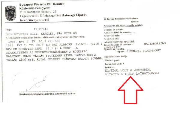 Tivadar azzal is érvelt, hogy a közteres által készített és az eljárás során csatolt fényképfelvétel (amelyen látható a kék-fehér tábla) nem egyezik az általa (az autósok szemszögéből) készített felvételen láthatóakkal. Utóbbin egyáltalán nem észlelhető a tábla. Ne feledjük, hogy a közteres statikus pozícióból készíti ezeket a felvételeket, az autósoknak viszont dinamikus környezetben, mozgás közben kellene félreérthetetlenül észlelni és értelmezni a kihelyezett táblát.