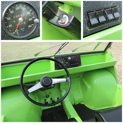 Ezt a zöld színű, többfunkciós járművet Delta 6 névre keresztelte a Michael Conrad, Henner Werner és Detlef Unger alkotta csapat. Hat, mert hatféle, különböző kialakítást álmodtak meg erre az alapra. A „srácok“ közül – srácok, srácok, Michael 1940-ben született… – Herr Conraddal találkoztam már többször is, ő és barátja, Werner Brendel az, akik megmentették ezt a kocsit. A kék roadsterrel ellentétben ezt soha sem restaurálták, bár átfényezték már pár évtizeddel korábban. Egy kis törődés még ráférne, mert azért magán viseli az elmúlt évtizedek megpróbáltatásait, bár órája szerint kevesebb mint tízezer kilométert futott csupán. Mindegy, ezt engedjük el, állapota így hiteles és megőrzött, miközben teljesen működőképes és rendszámmal rendelkező szerkezet, ma is simán kifordulhatsz vele az utcára a többi közlekedő közé.