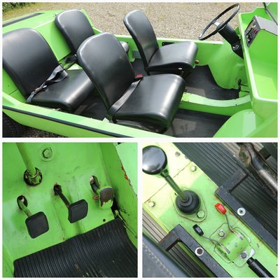 Ma már a Delta 6 nyílván semmiféle biztonsági előírásnak sem felelne meg, de ne feledjük, a cél nem az európai forgalmazás volt több mint fél évszázaddal korábban sem... Különben pedig a nyitott négyüléses strandautó elegendő helyet kínál négy felnőtt számára, sőt, elöl még csomagtartója is van. Négy szék, pár kapcsoló és egy sebességmérő van belül, a biztonsági övek később kerültek bele. A nagy hátsó motorháztetőnek köszönhetően az NSU motor nagyon könnyen szerelhető és hozzáférhető.
