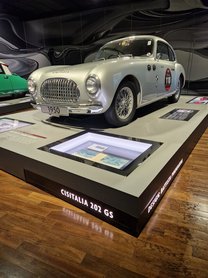 A Battista „Pinin” Farina (1893-1966) által alkotott letisztult megjelenés, amellyel minden felesleges dolgot eltávolított a Cisitalia 202 karosszériájáról, új formatervezési korszakot nyitott a kupék és a sportkocsik számára. „Pinin” Farina e mellett – lényegében egyetlenként kiemelkedve az olasz tervezők közül – a kreativitást a jó üzleti érzékkel is össze tudta kötni. Amíg riválisa – a Bertone – inkább felfedezte és toborozta a tervezői tehetségeket, Farina a művészi lét mellett sikeres vállalkozó is volt. A nevével kapcsolatban érdekesség, hogy Battista Farina csak 1961-ben, az olasz elnök hivatalos jóváhagyásával kapott engedélyt a „Pininfarina” név használatára. Ezt követően torinói vállalkozása „Pinin Farina” helyett Carrozzeria Pininfarina néven vált ismertté – ahogyan az itt bemutatott Cisitalia 202 formatervezési mérföldkövön is látható. Battista egyébként gyermekkorában, alacsony termete miatt kapta a „Pinin” (olaszul kis fickó) becenevet. Első érdemeit a Stabilimenti Farina cégnél szerezte, amelyet idősebb testvére, Giovanni alapított 1906-ban. Battista 1930. június 30-án alapította meg saját cégét s 1939-re már ötszáz alkalmazottal dolgozott és évente mintegy 800 karosszériát gyártott. Az első világháború után Farina barátja, Enzo Ferrari főtervezőjeként szerzett hírnevet. A Ferrari mellett a tehetséges tervező ügyfelei között volt az Alfa Romeo, a Peugeot és a Lancia is. Farina stílusirányzatok sorozatát alkotta meg, amelyeket főleg a védjegyévé vált letisztult, minimalista vonalakkal jellemezték. A Cisitalia és a kapcsolódó Lancia Aurelia GT után a Pinin Farina az 1950-es években az Alfa Romeo, a Ferrari és a Lancia Spider modelljeivel tette le névjegyét. 1960 körül (BMC, Lancia, Peugeot) jellegzetes stílust alakított ki, az általa legjobb autóipari alkotásának nevezett Lancia Florida, egy 1957-es formatervezési tanulmány alapján.