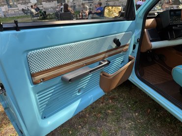 A kocka Panda már eleve nem filléres autó, de a 4x4 verzió egyszerű összkerékhajtásával egészen drága mulatság, a tulajdonos is milliós összegért vette, majd az autó árának többszöröse ment el a felújításra, az eredetileg fehér autót csupasz karosszériáig szedték szét, hogy kívül-belül megkaphassa ezt a vidám színt, majd egy egyedi kárpitozással dobták fel. A Panda rengeteg limitált szériája közt a Riva nem szerepelt, viszont a hajós-szörfös jelleget így próbálták kiemelni, és a márkatárs 500-asból eleve létezett Riva, így aztán mi vidáman megbocsátjuk, hogy ez nem teljesen eredeti így, az aprólékosságot fémjelzi, hogy a tulajdonos három szettből állította össze a szép, jól működő Carello kiegészítő fényszórókat.