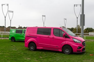 A kronológia szerint most már meg is érkezhetünk a rekordkísérlet reggeléhez. Én persze már a Ford-központ parkolóját meglátva transzba estem, ovis a cukorkaboltban nem kap olyan cukorsokkot, mint én a sok színes Transittól , pedig akkor még a tarka fagyiskocsit nem is láttam. Vicces volt látni ezt a szivárvány összes színében csillogó, bő kétszáz Transitot, mert alig volt köztük tipikus White Van. A régieknél még csak értem, tényleg nem sok fehér egyes vagy kettes Transitot láttam eddig, de a hármasok-négyesek óta a túlnyomó többség itthon is fehér. Itt meg alig találni a parkolóban alapáras fényezésűt.