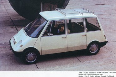Amíg az Autonova GT sportos kocsi volt, az 1965-ben bemutatott Autonova FAM-ot a kisbuszok előfutárának tekintik. A jármű prototípusa a mai napig megtekinthető a müncheni Neue Pinakothek der Moderne-ben – ja igen, az Autonova GT pedig az Audi Tradition gondozásában van mostanában már, létezik a mai napig. Ezeket a projekteket a Veith Pirelli gumiabroncsgyártó és a Neckarsulmer Motorenwerke – ugye az NSU – finanszírozta. A formatervezés tekintetében azonban a tanulmányok messze megelőzték a korukat, ami az egyik oka annak, hogy a sorozatgyártásuk elmaradt. Ahogy Michael mondja, „a FAM fontos jellemzője, hogy a vezetője az első tengely mögött ül. Ezért az első Fiat Multipla nem buszlimuzin, vagy egyterű, ahogy a régi VW busz sem! Az első sorozatgyártású ilyen jármű a Renault Espace volt, amit közel két évtizeddel a FAM után mutattak be.” A FAM projektbe Fritz B. Busch is beszállt, így Michael Conrad és Pio Manzú triumvirátus jegyzi a Glas 1304-es alapra épített variálható belsőterű Autonova FAM buszlimuzint, amely a családi buszlimuzinok elődjének tekintendő.