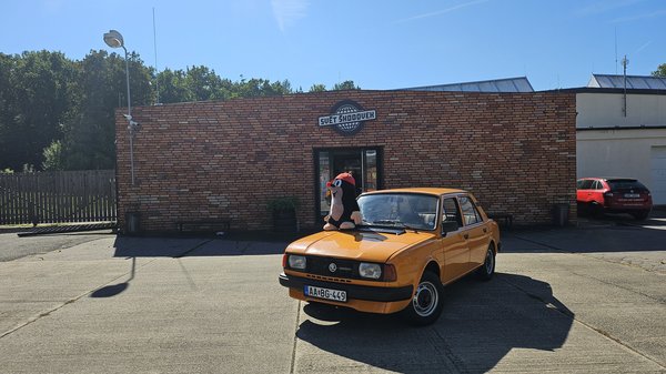 Kint voltunk vele a 45. Parkoló Parádén autóztatni, ahol szintén sok embernek csaltunk mosolyt az arcára. A tavalyi évben viszont összejött a legfontosabb: kijutottunk vele Csehországba. A Skoda klub alapítójának szervezésében 20 autóval (amiből öt faros volt), 50-en kimentünk egy négynapos zarándoklatra, ahol végigjártunk minden nagyobb skodás helyet. Itt végre elkészíthettem azt a fotót, amire évek óta vágytam, a gyári múzeum feliratánál, Mlada Boleslavban. 41 évesen hazalátogatott, és megajándékozott bennünket egy felejthetetlen, 1400 kilométeres kirándulással.