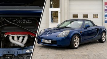 A Toyota MR-2 utolsó, harmadik szériája már papíron is biztató: középmotor, hátsókerék hajtás, egy tonna alatti súly, és nyitható a teje, hogy egy kicsit jobban rohanjon a világ, amikor fűzzük a szerpentin kanyarjait. Az MR-2 valódi csodája, hogy nem csak a paraméterek hangzatosak, de valóban tudja a vidám, kanyarról-kanyarra dobálós veretést, viszont akkor miért nem jár mindenki ilyennel? Furcsa módon pont ennek a szériának kifejezetten problémás a motorja, a konkrét autónak is felújították már. Viszont ezt a tulajdonos maga csinálta, épp ezért érdekes, hogy sikerült a művelet.