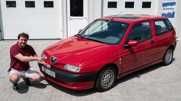 Bár Chris Bangle nevét a BMW kapcsán ismerte meg az egész világ, előtte éveket dolgozott a Fiatnál és az Alfánál - és az Alfa 145 formája is Bangle munkája - legalábbis a modell 1994-ben jelent meg, tehát a forma már nagyjából 1991-ben készen állt, szóval igen valószínű, hogy Bangle keze (is) benne volt. Az autó többi részére sem lehet panasz, látszik, hogy sehol nem a szokványos utat járták, mert annál jobbat akartak.