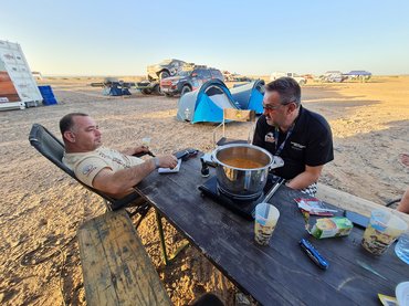 Gyönyörű, tiszta homokdűnék, élvezetes és gyors offroad szakaszok, papíron minden adott ahhoz, hogy a verseny utolsó pár napját alaposan kiélvezzük. Az Isuzu egy nyekkenés nélkül teszi a dolgát, pedig kapja a tempót, és egy-egy buckán bizony oda is ütöttük rendesen, de ez a hasmagasság, ezekkel a gátlókkal és rugókkal kineveti az afrikai viszonyokat, fölényesen lehet neki tolni, a nap végén pedig maximumon lévő olajszinttel és egy kicsit poros légszűrővel nevet az arcunkba: mi jobban fáradunk, mint ő.