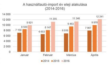 2016 első harmadában közel 45 ezer használt autó özönlött be az országba, 24 százalékkal több, mint tavaly ugyanebben az időszakban. Az előző évek tapasztalatai szerint - az év végére bekövetkező további élénkülést is figyelembe véve - a Használtautó.hu szakértői jó esélyt látnak arra, hogy változatlan piaci környezet mellett év végéig nem kevesebb mint 150 ezer használt autó érkezik majd. Az import járművek több mint 60 százaléka továbbra is legalább tízéves, miközben a behozott autók összetételében a presztízsmárkák súlya évről évre lassan csökken.