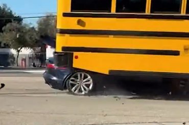 Hírek baleset 2026. 02. 21. 08:55 Az iskolabusz elnyelte az alá beszaladó Jaguart Egy szemtanú videóra is vette a hatalmas csattanást.