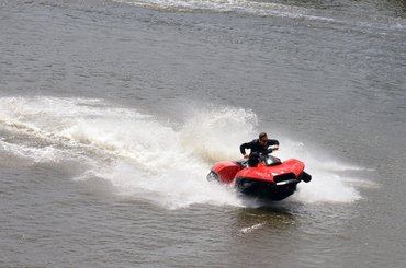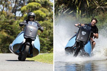 Totalbike robogó 2018. 01. 26. 10:47 Noét is kiröhögték, aztán kinek lett igaza? Aszfalton 130, vízen 60 km/h a vége a robogó-jetski hibridnek.