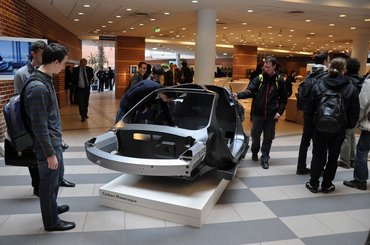 Dr. Martin Winterkorn egy 400 fős előadót megtöltött kötelező éves hakniján a Budapesti Műszaki és Gazdaságtudományi Egyetemen. A jól bevált recept nem változott; az előző két alkalommal is meg lehetett fogdosni a legújabb autó karosszériáját.