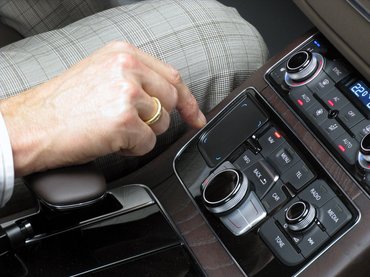 A sok elektronika kezeléséhez is kitaláltak valami újat. A vezető kapott egy kis tapipadot, mint egy notebook, továbbá kézírás-felismerő rendszert is. A címek, telefonszámok keresésekor az ember csak elkezdi írni a betűket, az autó megismétli, hogy mit ismert fel, majd ha már elég szűk a választék, feldobja a listát. Az MMI tekerőgomb is megmaradt, mert bizonyos dolgokat egyszerűbb vele kezelni, de a térkép görgetése, az MP3 albumok lapozása tényleg pofonegyszerű a touchpaddel. Pláne, hogy a váltó előválasztó karját úgy alakították ki, hogy az ember meg tudja támasztani a csuklóját.
