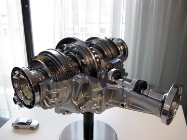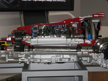 Ekkor jött az a rész, ahol egy picit az volt a benyomásom, hogy a nagy német autógyárak ugyanazokhoz a beszállítókhoz járnak bevásárolni. Az Audi is megvette tehát a ZF-től az új nyolcfokozatú automata váltót, amely 0,9 másodperc alatt tud nyolcadikból kettesbe visszakapcsolni. A váltó érdekessége még, hogy stop-start rendszerrel is együtt tud működni – a motorleállítást inkább kézi váltós autóknál szokták csinálni. Hogy miért? Azért, mert az automata váltó megfelelő olajnyomás nélkül nem működik igazán selymesen, ehhez pedig idő kell. Kapott hát egy nyomástárolót, amely a motor újraindításakor előtölti a váltót.
