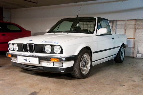 Nem csillogó bemutatókra építették, fényes alumíniumlemezzel, hanem egyszerűen, praktikusan. Szállítóautónak használták a gyáron belül. Nem is a szélesített M3-as kaszniból faragták, hanem a sima kétajtósból, és a 320is motorja került bele. Valószínűleg azért, mert olyan volt éppen kéznél, de elég is a 192 lóerő, amit a két literre visszazsugorított M3-as motor tud. Kicsit rozsdás, körbe van ütve, a raktere úgy néz ki, mint egy kőművesek által gyalázott húszéves VW Transporteré. De egy pick-up legyen is ilyen, hiszen teherautó: szép nem lehet, csak hasznos.