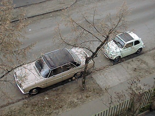 Egy este, munka után lementünk Töfikével (a Fityó) a Balaton mellé. Végig őrjöngő viharban. Nálam valami nagy dög terepjáró volt – tesztautó, nem az enyém –, a Fiat néha eltűnt a cunamiban, horror volt. Úgy terveztük, hogy kötélre vesszük az autót, mihelyt kigyullad az Olio, de annyira hideg volt, hogy fel se villant egész úton. Szép lett volna abban az ítéletidőben, az éjszakában vontatni.
