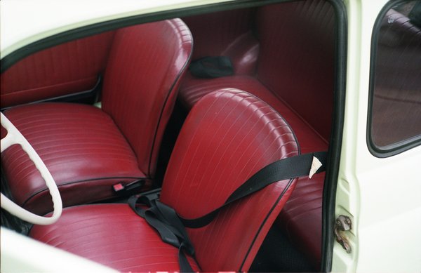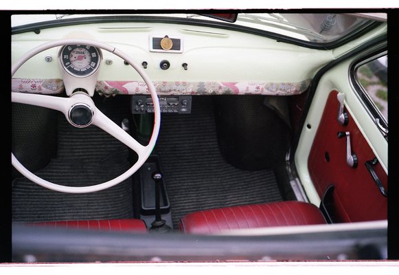 Megvette a pénzéért kapható legjobb 500-as Fiatot. Az 500-as klub elnöke ajánlotta, a kocsi, ha nem is lett restaurálva, de a karosszériáját az utolsó lemezig felújították új javítóelemekkel, a motorját, futóművét, mindenét generálozták, csak a belső terét nem csinálták meg rendesen, azt valami brokátos anyaggal húzták át. Igen, a műszerfal élén levő térdpárnákat is… Később az utastér javát egy Forlíban (Olaszország) bontott 500 L-ből pótoltam, csodás lett. Kint pisztáciazöld, bent dönthető háttámlás(!), bordó ülések, kárpitok. De már ott, Etyeken, brokátos béllel is el voltunk ájulva a kisautótól.