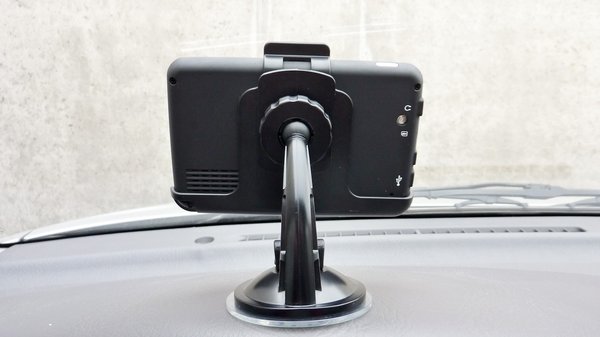 Ami a csatlakozókat illeti, kellemes nosztalgiával néztem a mini-USB-t a Wayteq-en, mert a micro-USB az új divat, pedig egy tucat drótom passzolna a másikhoz. Van 3,5-es fülhallgató-kimenet is, plusz egy micro-SD kártyahely. A tartó elég kompakt, kis masszív cucc, viszont erősen döntött szélvédőnél célszerűbb állítva odacuppantani valamilyen vízszintes felületre, ha van ilyen.