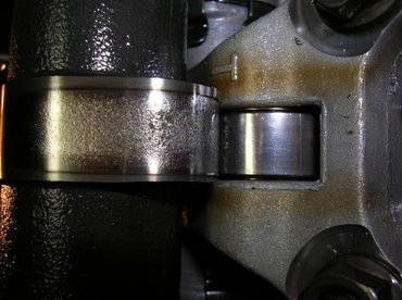 Ami nagyobb fordulatú, az nagyobb terhelést kap, ez nyilvánvaló, de ha a kenés kialakul és megfelelő, akkor a kopás szinte nulla. A forgattyús mechanikában a siklócsapágyakban szépen kialakult a hidrodinamikus kenés, a csap felúszott az olajfilmre, a forgattyús hajtómű szórja az olajat, mint bolond pék a lisztet, a hengerfal bőven kapja a kenést, az olajlehúzó gyűrű alig tudja levenni felesleget a hengerfalról. A két holtpontban van egy kis probléma, mert ott nincs a megfelelő kenéshez elég siklási sebesség, de nem baj, ettől úgysem tudunk megszabadulni. A vezérléshez is jut bőven olaj, az olajnyomás már a szabályozottan maximált tartományban van valahol 6 bar környékén; minden szerkezeti elem boldog.