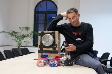 A laboratórium a szerkesztőség tárgyalóterme lett, mert csak egy ablaka van, nem jön be zavaró fény és van legalább 4 méteres, hogy ne 50 centiről világítsunk a fehér falra.
