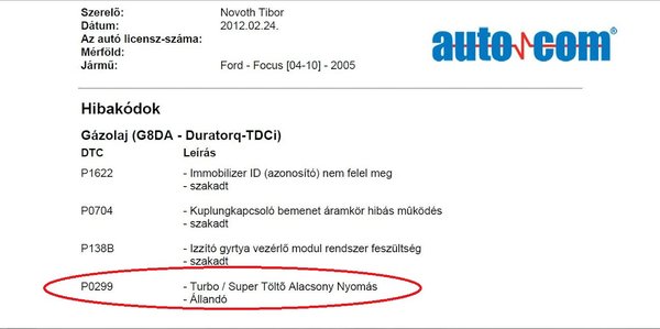 Bár az elmondottak alapján a turbófeltöltő meghibásodására gyanakodtam, első lépés most is a hibatároló olvasása volt. Egy tévhitet szeretnék eloszlatni, ami szakmai berkeken belül terjed. Több kolléga is felvetette, hogy az Autocom műszer gyengén kezeli a Ford különböző típusait. Tapasztalatból írom, hogy ez nem igaz. Sajnos az interneten keresztül hazánkat is elárasztották a kínai hamisítványok, amelyek az eredeti műszer rossz hírét keltik. Nálunk ez a műszer két cégtől szerezhető be legálisan. És nem árt tudni: a klónműszerrel végzett egyes beavatkozások súlyos károkat okozhatnak a mai autókban.