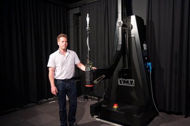 A Tungsram laborjában a lámpatestek megmérésére picivel nagyobb tér áll rendelkezésre, mint nálunk a tárgyalóban. A fényérzékelőt a 25 méter hosszú folyosó túlsó végén helyezték el. Ez a fix pont a rendszerben, és a lámpatestet egy mérőlapra rögzítik, majd ezt mozgatva, minden irányba elforgatva mérik meg az egyes pontokban a fényerőt nagy pontossággal. Természetesen számítógépes rendszer szabályozza az egész folyamatot.