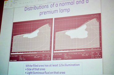 A gyárak arra alapozzák a plusz X százalék-jellegű típusjelöléseket, hogy kijelölnek fix pontokat, ahol összehasonlítják a normál és a növelt fényerejű izzó által adott fényt, átlagolnak, osztanak, szoroznak, megmérik a 12 lux feletti megvilágítású terület nagyságát, és kijön egy százalékérték. A bibi csak az, hogy senki sem árulja el, melyek ezek a pontok, mi a pontos számítás, ergo nem is lehet rajtuk számon kérni. Másrészt a konkurens termékek nem összehasonlíthatók, mert a rájuk írt szám nem ugyanazt jelenti. Csak egy biztos: az a bizonyos ezer lumen, ami összesen kijön. De ez kit érdekel, ezt egy minőségi H4-es is tudja, ha jó napja van, és megkapja a megfelelő tápfeszültséget.