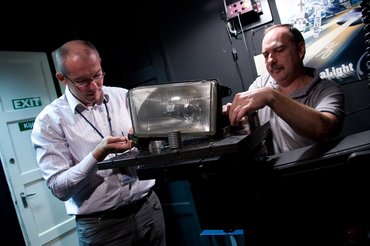Inkább maradjunk a műszaki kérdéseknél. Az alapkérdés az, hogy mit tegyen Robi, hogy lásson, de a törvényesség határain belül. Legutóbb, a növelt fényerejű halogének vizsgálatakor a Tungsram szakemberei felajánlották a segítségüket, így adta magát, hogy hozzájuk forduljunk. Az alapötlet az volt, hogy szereljük ki a Tehén lámpáját, mérjük meg, mit tud xenonnal, halogénnel és növelt fényerejű halogénnel.