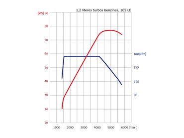 Kisebb fordulatszámon egész kulturált a hangja, itt viszont egyáltalán nem tűnik erősnek. 1500-as fordulaton 26 lóerőt ad le, 2000-nél 38-at, 3000-nél 61-et. Ennél tovább mindennapi használat közben nem is igen szokás hergelni. Viszont ott a másik motor, a kicsi 1,2 literes turbós benzines, ami ugyan papíron gyengébb, 105 lóerős, mégis sokkal virgoncabbnak tűnik a napi közlekedésben. Persze, hiszen 1500-nál 38, 2000-nél 51, 3000-nél pedig 74 lóerő jön ki belőle, azaz alacsony fordulaton mindenütt bő tíz lóerővel izmosabb. Ebben az esetben az a fura helyzet áll elő, hogy ha az ember a papíron erősebb autót választja, gyengének érzi az autót.