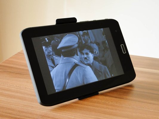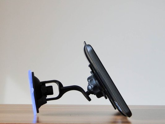 A táblagéphez csomagolnak egy felpattintható kitámasztót is, amely filmnézéshez kiváló. Ehhez csatlakoztatható az a tapadókorongos kar, ami meglepetésemre pont olyan, mint a sima, ötcollos Navon (N760) navigációé. Éppenséggel elbírja a 33 dekás cuccot is, de alaposan meg kell húzni a gömbcsuklót, hogy böködéskor ne mozduljon el. Érzésem szerint a kar lehetne hosszabb, ha erősen döntött szélvédőjű kocsiban akarják használni. A tesztpéldány karja pár tizedmilliméteres kotyogással csatlakozott a bölcsőhöz, ez már azt jelentette, hogy amikor a tablet szélén kellett valamit böködni, már lötyögött a táblagép.
