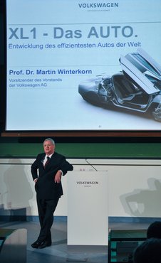 Az előadás gördülékenyen kezdődött, gyors felvezetés után Winterkorn már el is kezdte jól összeállított előadását. A téma az autózás jövőjéről, az XL1-ről szólt. A három fő probléma, amivel manapság egy autógyártó küzd: az emissziós normák, a szmog a nagyvárosokban és a fosszilis tüzelőanyagok véges készletei. A cél minél alacsonyabb fogyasztást elérni, ezzel és egyéb módszerekkel csökkenteni a motorok károsanyag-kibocsátását. További probléma a jogalkotás, sok helyen már megjelent az Euro szabvány szerinti behajtáskorlátozás a nagyobb városokban. Bármelyik piacot nézzük is, a károsanyag-kibocsátási előírások drasztikusan szigorodnak. Amerika és Európa a mérési technológiában is és az előírt értékben is különbözik, azonban mindkettő rendkívül szigorú.