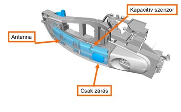 Ennek megvalósításához további szenzorokra és vezérlőegységre volt szükség. A lökhárítóba két kapacitív érzékelőt szerelnek, amelyek a funkció vezérlőegységéhez küldi a jeleit. Ha mindkét jeladó úgy érzi, hogy emberi lábat dugtak a közelébe, ugyanúgy megindul a nyitási folyamat, mintha csak megnyomták volna a kulcs vagy a műszerfal nyitógombját, mindössze annyit késlekedik a rendszer, hogy az embernek legyen ideje picit hátrébb lépni a felnyíló ajtó útjából.