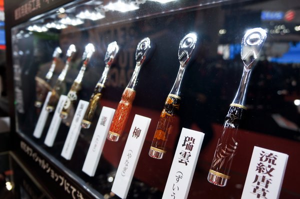 Meglepően sok szerszámgyártó is épített magának standot, ezeknél remegett talán a legjobban a térdem. Ki ne érzékenyülne el egy japán motívumokkal megfestett nyelű racsnis dugókulcs láttán? Gyönyörű szerszámokat hoztak, igényességben inkább hasonlítottak egy művészien kidolgozott hangszerre, mint egy közönséges munkaeszközre.