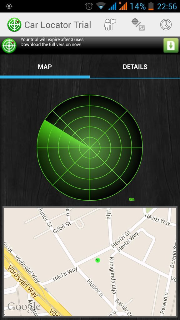 Egyszerű program, melynek segítségével könnyedén megtalálhatjuk a parkolóban hagyott autónkat. GPS jel nélkül nem működik, tehát a mélygarázsokban a csak memóriánkra hagyatkozhatunk, viszont a felszíni gépjármű labirintusokban Ariadné fonalával érhet fel. Plusz szolgáltatás, hogy méri a parkolóhelyen eltöltött időt.