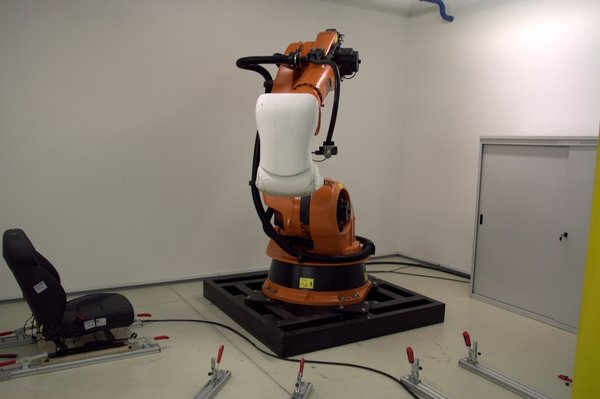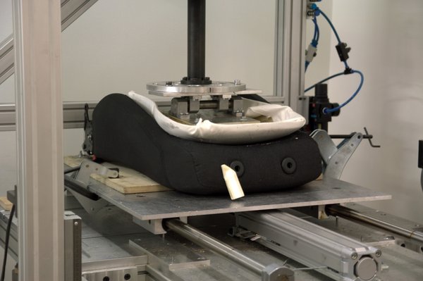 Jól látják, a Kuka-robot egy hátimitációval van felszerelve. Ezzel a szerszámmal és a hozzávaló algoritmussal a Nagy Fészkelődőgép a helyén fészkelődő, kényelmes üléspozíciót kereső ember mozdulatsorát szimulálja. A minimum itt is hat nap, ez alatt a gép egy pillanatra sem áll le, de van olyan gyártó, amelyik 21 napos tesztciklust ír elő.