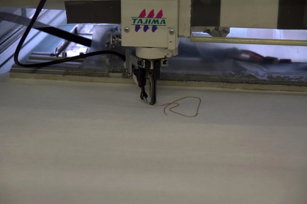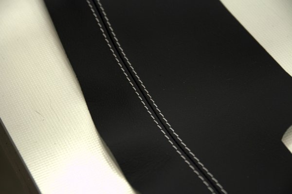 Kicsit eltérő a termék ugyan, de ugyanúgy a kis gyártócsarnokban készül pl. az S osztály Command-rendszerének kontrollere, ami leginkább egy bőregérre hasonlít. Mármint egy bőrrel bevont egérre. Három darab bőrt varrnak össze, majd ragasztanak fel egy műanyag vázra. Nem messze innen készülnek a fűtött ajtókárpitok, illetve az E osztály felső ajtóborításai is. A szabásnál 1 milliméter a hibahatár, a díszvarrásnál pedig 0,4 milliméter. Tudják, ez az, ami látszik, és sokan varrásnak hiszik, pedig nem, az a másik oldalon van. Ennyit a precíz követelményekről.