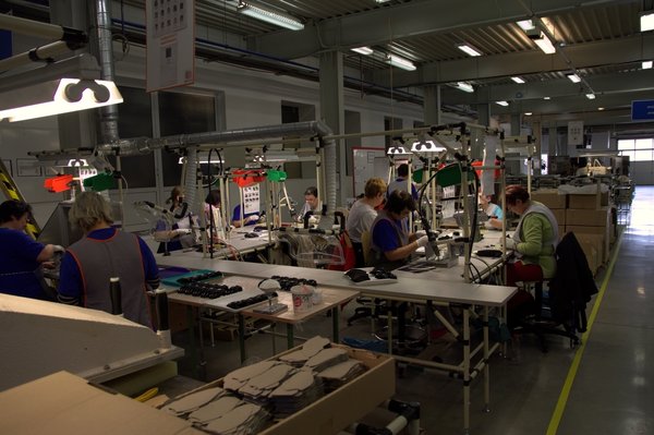 A gyártósor persze nincs itt, Ukrajnában, a határtól nem messze lévő Nagyszőlősön folyik a tömegtermelés, de az itteni fejlesztőközpont még így is 250 embernek ad munkát, akikből kerek 60 a fejlesztőmérnök. Minimális gyártási kapacitást így is meghagytak, a nagyon kisszériás, illetve előszériás gyártmányok a mai napig itt készülnek, jellemzően kézzel gyártva. Van, amely aztán a megfelelő gyártási folyamatok kidolgozása után elkerül magába az ukrán gyárba, de van, ami itt marad, amíg a megrendelt mennyiséget le nem gyártják. Az igazi truváj ebben az, hogy a megadott specifikációtól nem térhet el az a termék sem, amely százával potyog ki a gyártósorról. Ugyanolyannak kell lennie, mint amit kézzel hajtogatnak és varrnak-ragasztanak szigorú tekintetű nénik itt, Magyarországon.
