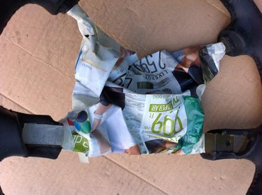A maszkolást így sem lehet elkerülni, már ha az ember kicsit is igényes a munkájára. Mindent, amit kellett, leragasztottam maszkoló szalaggal, illetve újságpapírral borítottam a nagyobb felületeket. De csak azután,hogy alaposan átcsiszoltam az egész kormányt. Ahol lekopott, lekaristolódott a festék, illetve ahol már kifényesedett a bőr, ott fokozott odafigyeléssel csiszoltam, hogy minél kevesebb felületi egyenetlenség maradjon. Gyakran kellett eldobnom az eltömődött csiszolópapírt, a belerakódott bőr miatt nem lehett rendesen dolgozni vele.Talán feleslegesnek tűnhet egy igénytelen kókányolást ilyen szinten előkészíteni, de arra gondoltam, ha esetleg mégis vállalható lesz a végeredmény, az ideg széjjelvetne, ha most ellinkeskedem a dolgot.