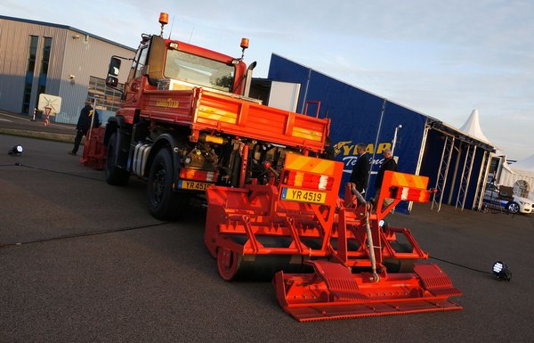 A havas tesztekhez használt saját hótoló Unimogjuk is elég látványos volt: ahhoz, hogy mindig összehasonlítható körülmények között tudjanak méricskélni, nem csak letolja a havat, de a végére akasztott szerkezet három lépcsőben vissza is rendezi úgy, hogy lehetőség szerint mindig ugyanolyan legyen. Először megforgatja, aztán állítható erővel kompaktálja, végül elsimítja. Egész évben tesztelnek, a műhelyteherautó is utazik keresztbe-kasul a világban, Skandináviától Új-Zélandig.