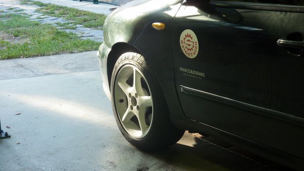 Ami a hirdetés fotóin eltorzult arccal éppen vállalhatónak tűnt, az autón már határozottan jól áll, és a belestemplizett évszámból még az is kiderül, hogy a felni veterános zsargonnal élve period correct, hiszen 97-es, ami gyönyörűen beleesik a Marea gyártási periódusába. Én csak annyit mondanék, hogy ez a szopott forma pont megy a lenyalt Fiatunkhoz.