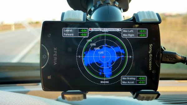 Azt találtam ki, hogy feltapasztom a telefonomat a szélvédőre, bekapcsolom a DashCommand skidpad funkcióját, és körözök egy kicsit egy elhagyatott körforgalomban, valamint fékezek egy röcögőset a közforgalomtól elzárt magánutamon. Ebből adódna egy két számjegy pontosságú gyorsulásérték, nevezzük G-nek, amellyel egy százaléknyi különbséget meg tudnánk állapítani ahhoz képest, ha egyáltalán nincs tapadásunk. Vagyis ha A gumi 0,91 G-t tud, B gumi pedig 0,95-öt, akkor a B-t szeretjük.