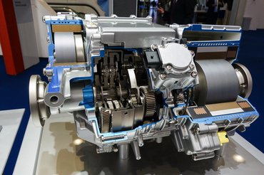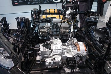 Itt van rögtön a Schaeffler standja, ahol – ugyan karosszéria nélkül –, de szinte egy teljes szupermodern hibrid autót össze tudunk legózni, amiben villany, benzin, gépészet, minden benne lesz.
