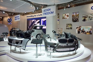 Következő stand: Plastic Omnium, azaz műanyag minden, fél-angol, fél-latinról fordítva. Félbehagyott BMW-k, megkezdett Porschék, egyéb autótorzók figyelnek a dobogón – hiszen mindhez ők gyártják a ruhatár egy részét. Egyre jobban kikívánkozik belőlem egy megfigyelés, pontosabban régebbi mondanivaló, de majd a cikk végén kinyomom a pattanást.