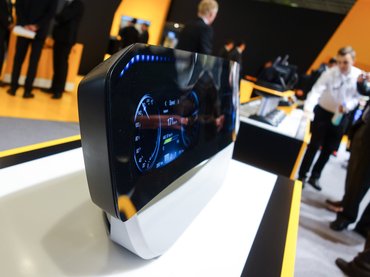 Ami viszont számomra újdonság: a Conti már készít olyan folyadékkristályos kijelzőt is, amely íveivel követi a középkonzol hullámait. Talán egy Renault-é lesz, mert a mellette levő félig LCD-s, félig elektromechanikus műszer formája azt juttatja eszembe – onnan jön az új stílus?