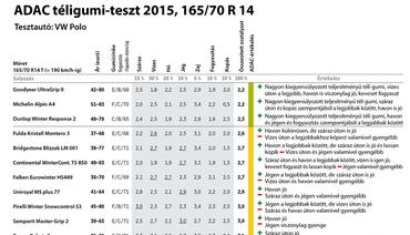 Számos ilyen ellentmondásos példát lehet találni a táblázatban. Reméljük, a különböző eredmények csak az eltérő mérési módszereknek köszönhetők, és sem a gyártók, sem az ADAC emberei nem kozmetikázzák az adatokat. A magának legmegfelelőbbet kereső vásárló mindenesetre nincs könnyű helyzetben, ha megalapozott döntést akar hozni, de a táblázat felső harmadában szereplő abroncsokkal azért jó eséllyel nem nyúl mellé.