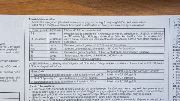 Nem véletlen, hogy a pár száz forintos fehér maszkokhoz általában még csak tájékoztató sem jár, hogy egyáltalán mi ellen hatékonyak, de ha beletúr az ember az dokumentációba, mindig kiderül, hogy ezek szilárd részecskéket, legfeljebb festékködöt képesek kiszűrni. Ezzel szemben a gázálarc kinézetű félmaszkhoz sokféle szűrőt lehet kapni, amelyekhez pontos specifikáció is jár. Ami hasonlóan a kis maszkokhoz csak részecskéket szűr, olcsóbb, a fullos viszont szerves, szervetlen, savas gázok és gőzök ellen is véd. Festékszóráshoz mindenképpen ilyet használnék.