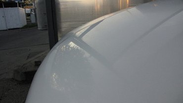 Miután megvoltam a kijelölt felülettel, tiszta vízzel leöblítettem, szilikonos vízlehúzóval szárazra húztam, majd jöhetett a sokat ígérő High Speed Wax. Most nem kellett nagyon bizonyítania a fújható viasznak, egy fehér autón nem látszanak a finom csíkok, ha nem működik tökéletesen a cucc, csak arra voltam kíváncsi, tényleg lezárja-e a lakk felületét, és ugyanúgy lepereg-e róla a víz, mint a rendes viaszolt felületről. A vizes felületre felfújtam, mikroszálas kendővel áttöröltem, kész.