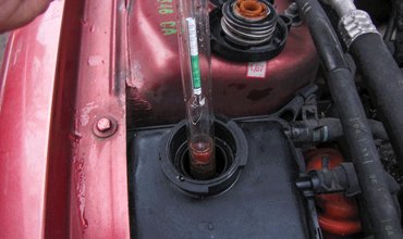 Több módszer is van arra, hogy megtudjuk, fagyálló hűtőfolyadék van-e a rendszerben. A költséges megoldás, amikor az első komolyabb fagyos éjjel után lehajolunk a kocsi alá, és keressük a blokkból kitört darabot – van, hogy a motorban, illetve a hűtőkörben megfagyó víz szétfeszíti a motorblokkot, megrepeszti a hűtőt, a fűtőradiátort. Ha eddig a pontig sikerül eljutunk, az akár sok százezer forintba is kerülhet, ezért nem javaslom ezt a módszert.