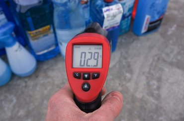 A Totalcarnál is teszteltünk szélvédőmosókat, kétszer is, a fagyásponttal mi is tapasztaltunk bajokat, de nem ez a téli ablakmosók legfontosabb jellemzője. Az ocsú a búzától használat közben válik el, amikor közvetlenül indulás után kell a fagyos szélvédőre spriccelni, és a menetszél miatti párolgás a környezeti hőmérséklet alá tudja hűteni az üvegen elterülő folyadékot. Ilyenkor a gyengébb minőségű anyagok, amelyek intenzívebben párolognak, könnyen jéghártyát képeznek a szélvédőn, ami könnyen veszélyessé válhat. Ennek a tulajdonságnak a vizsgálata nem olyan egyszerű, mint a fagyásponté, mi is megküzdöttünk, hogy valamennyire használható eredményeket kapjunk. A szélvédőmosóknál a tisztító hatás és az illat is fontos lehet, bár utóbbi nyilván szubjektív.