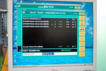 Először kikötöttem a tuningboxot, a jármű gyári opacitásadata 1,0 (vagyis a füstölés mértékét jellemző fényelnyelési együtthatója, azaz a K szám). A 252 ezer kilométer futott dízel Golf bőven belül maradt, nagyjából 0,38 volt az együttható. A tuningboxot bekötve a K szám majdnem háromszorosára emelkedett, de a mérések átlaga még így is pontosan 1,0 lett, zöld felirat jelent meg: megfelelt.