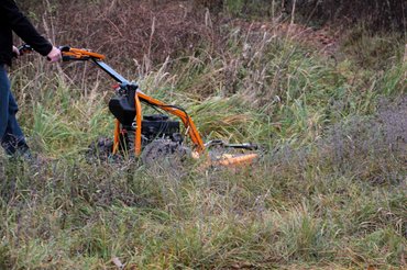 Mivel a berendezést olyan terepre tervezték, ahol sok a terepakadály, domb, bucka, karistoló faág, no meg meredek emelkedő és lejtő, a távirányítós megoldás az ideális tuning a stabilitás növelésére. Mert hiába építik mélyre a hajtáslánc elemeit, ha az egész tetejébe odaül egy százkilós (vagy még nehezebb) operátor. Olyan magasra kerülne a súlypontja, hogy egy csomó helyen nem boldogulna el – így viszont a kezelő sétál a gép mögött, vagy messziről nézve pöckölgeti a joysticket, így az ideális balanszot nem rontja el, ráadásul plusz súlyt sem kell feleslegesen cipelnie a gépnek.